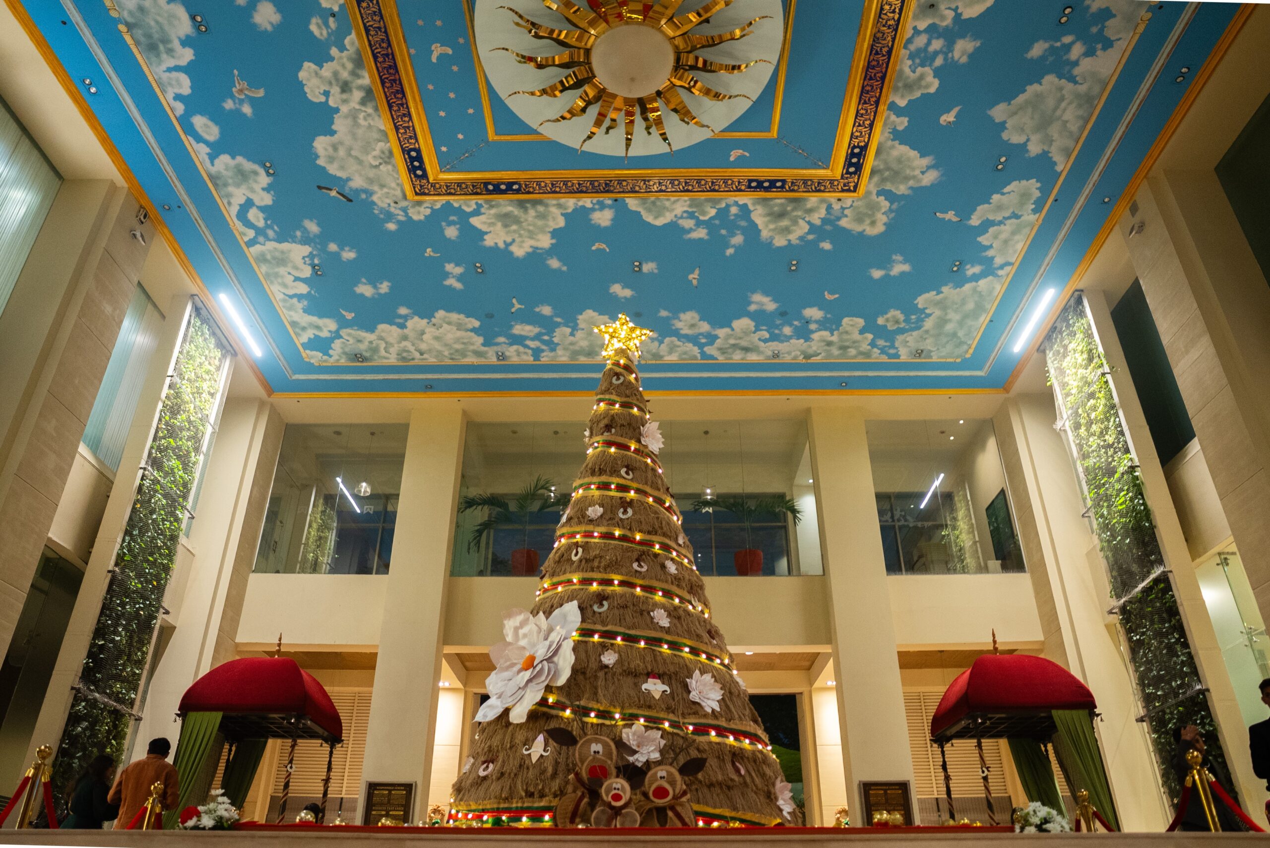 The decorations on the tree are made using jute, wood, reused ropes, and Eco-Friendly Textiles. Each element reflects our vision of Responsible luxury and our commitment to curate planet positive experiences. What makes this tree more special are the especially abled artists who brought this bloom to life.